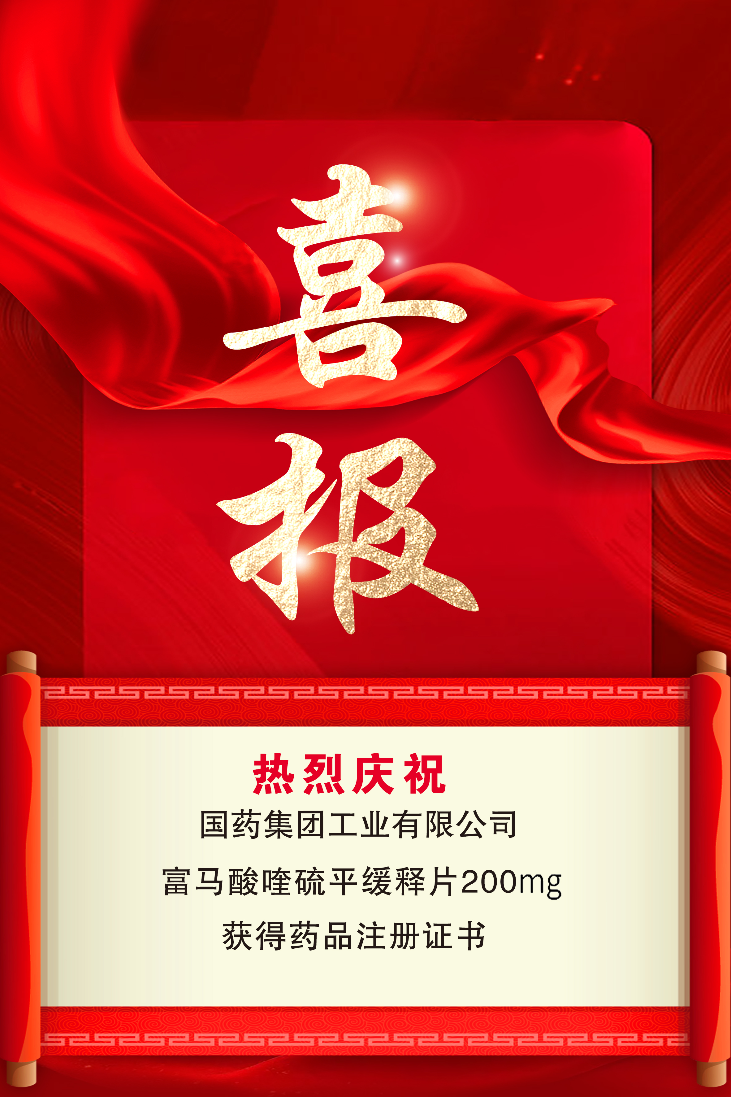 近日,国药工业收到国家药品监督管理局核准签发的《富马酸喹硫平缓释片200mg药品注册证书》,批准文号:国药准字H20253944。